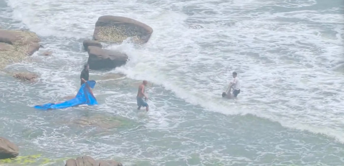7月12日,青岛燕儿岛山公园附近海域,一名游客不慎失足落水,落水者的头部隐约露出海面,被海浪拍打得越来越远,情况已然万分危急。就在这千钧一发之际,一名“白衣大哥”挺身而出,他在汹涌的海浪拍击下,踉跄着一把将落水者拽起,与此同时,岸边的两位好心人也迅速赶来伸出援手,众人齐心协力,最终成功将落水者救上了岸。